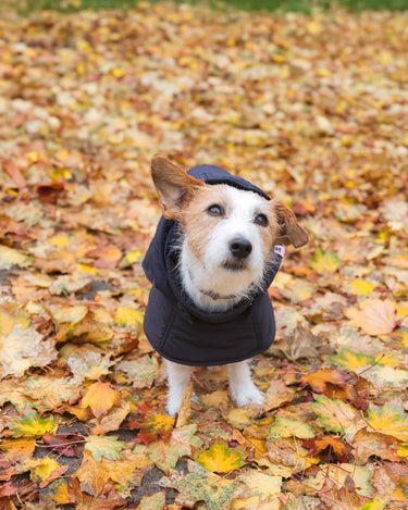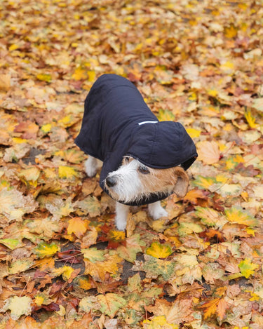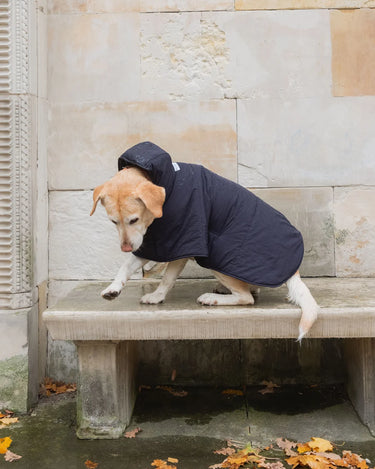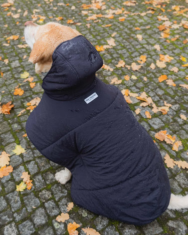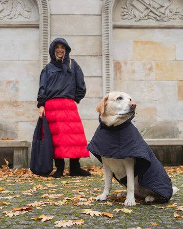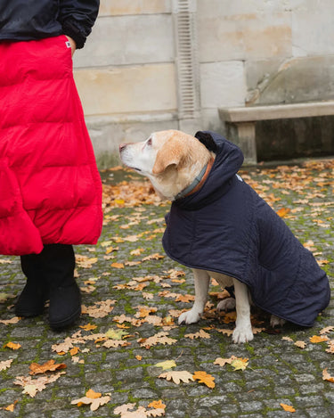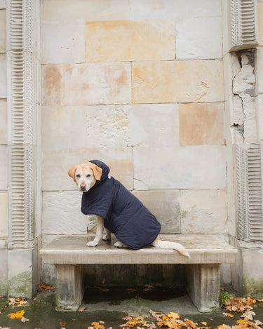 The dog hoodies are softly lined with vegan down, warm, water-resistant and made of the the same beautiful, recycled materials as your own accessories (capuches, gloves and shoulder bags).