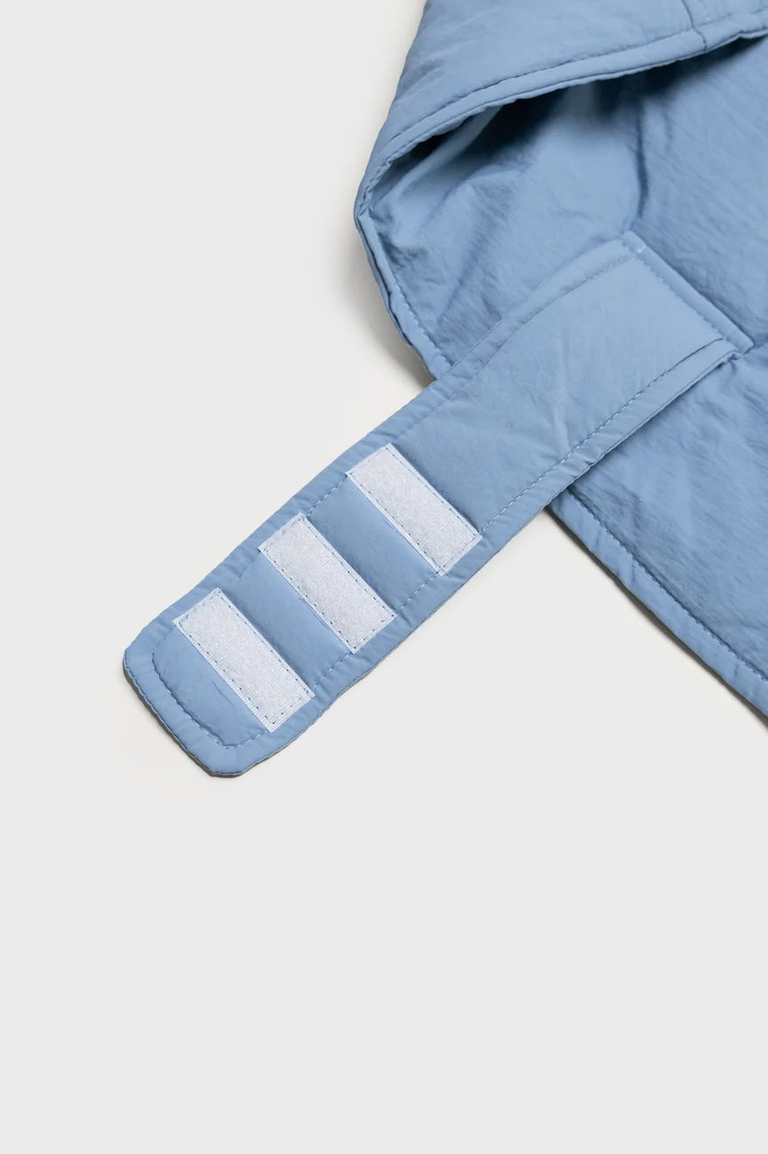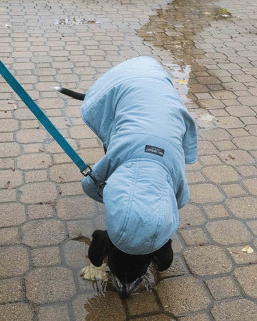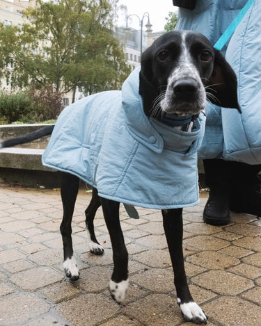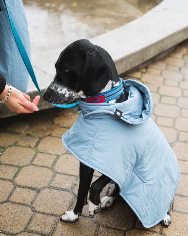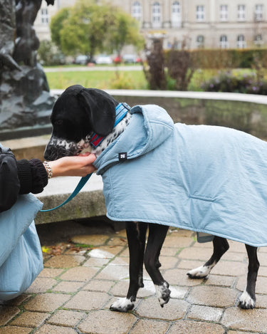 The dog hoodies are softly lined with vegan down, warm, water-resistant and made of the the same beautiful, recycled materials as your own accessories (capuches, gloves and shoulder bags).