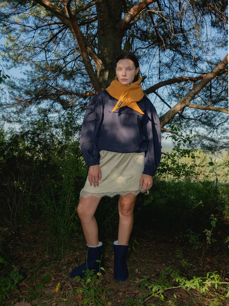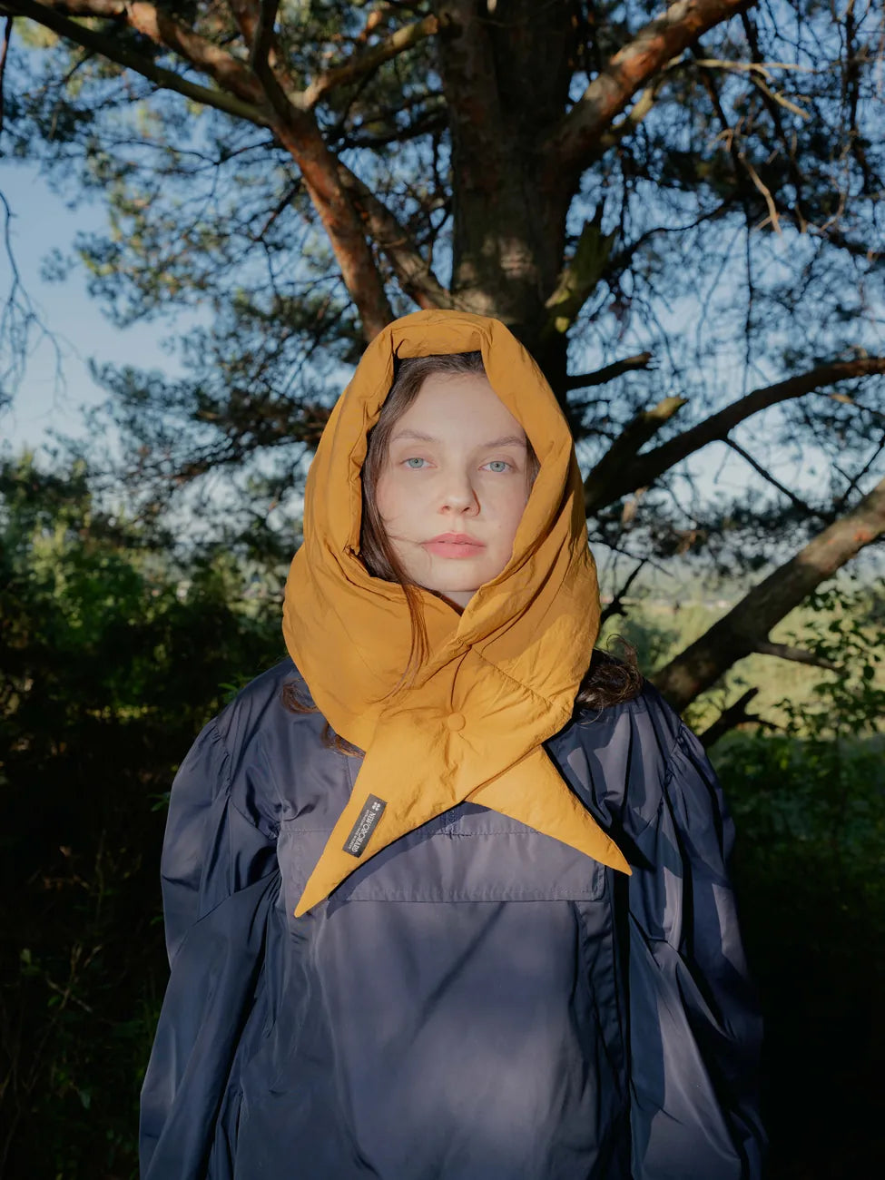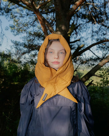 Our capuche (yes, a stylish hood for those chilly days) is as light and fluffy as real down but 100% cruelty-free.